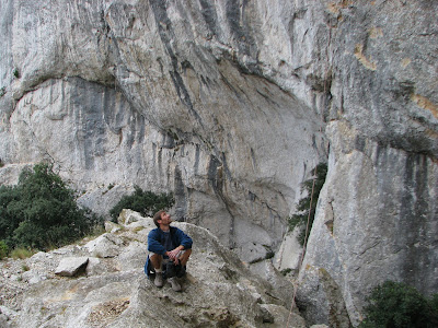On était accompagné de brutes épaisses (ben wouai sinon on aurait été boire un coup au port!). Ici Yan qui l'air détaché mémorise toutes les méthodes pour pouvoir faire ce 7c Flash.